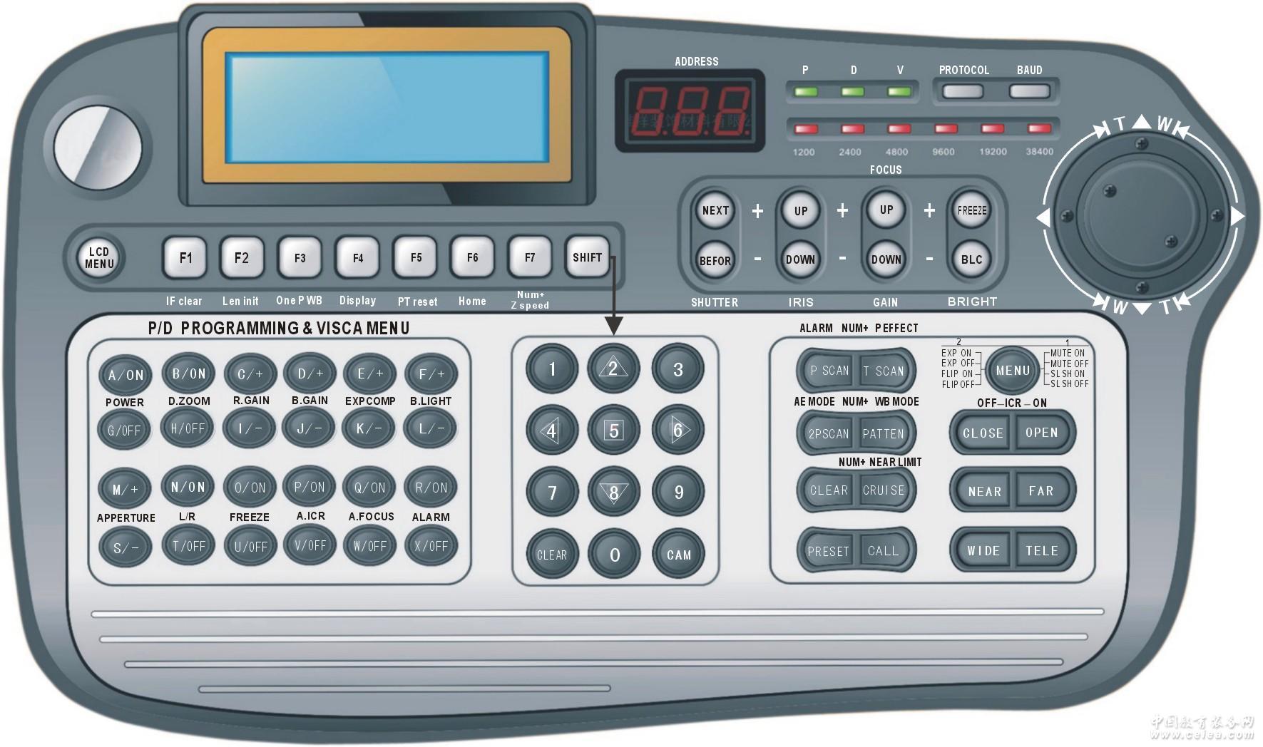 產(chǎn)品詳細(xì)介紹功能特點(diǎn): ◆液晶顯示,直觀、方便、易懂、信息量大等優(yōu)點(diǎn)。 ◆比例搖桿操作高速球和云臺(tái),手感好,控制靈活,使用方便。 ◆鍵盤(pán)鎖定功能可避免其他非授權(quán)用戶(hù)操作鍵盤(pán),安全性高。 ◆提供 RS422/RS485控制輸出信號(hào),同時(shí)提供標(biāo)準(zhǔn)的RS232控制信號(hào),方便近距離和遠(yuǎn)程 ◆設(shè)備可編程控制 ◆控制模式:主控、分控 ◆最大可接入分控?cái)?shù):16 ◆最大可控制攝像機(jī)數(shù):254臺(tái)(SONY D70P最多串聯(lián)7臺(tái),是有SONY自身技術(shù)決定的) ◆最大可控制監(jiān)視器數(shù):64 ◆最大可控制解碼器數(shù):1024 ◆通訊波特率:1200 bps~9600 bps ◆協(xié)議: PELCO_D、PELCO_P協(xié)議 ,SONY VISCA ◆數(shù)據(jù)格式:N,8,1 ◆供電電壓:AC/DC 9V~12V ◆功率: 5W |