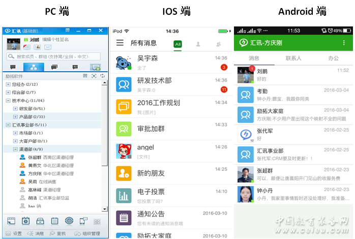 產品詳細介紹 匯訊融合了在線狀態、即時消息、短信、電話、傳真、郵件以及語音視頻、文件傳輸、虛擬辦公室等多種溝通方式,以溝通交流為核心、以企業管理為基礎、以商務協作為應用,實現"隨時、隨地、隨身"的交流,"可管、可控、可視"的管理,"一站式、全方位"的應用。匯訊以組織架構為基礎,以組織成員為中心,采用輕量級、插件化的架構理念來設計,并提供開發接口?梢宰鳛槠髽I第三方管理系統如OA、CRM以及其它業務系統的基礎平臺,實現一站式應用平臺。 |