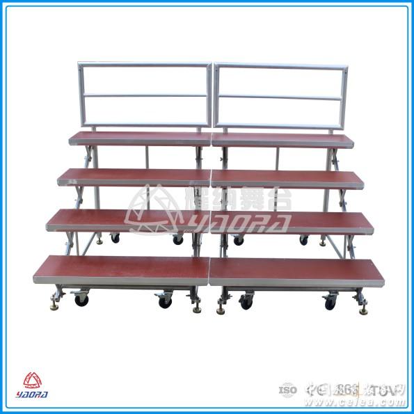 產品詳細介紹產品名稱:鋁合金折疊帶輪合唱臺 產品材質:鋁合金支架 面板有:鋁合金、木板、木板+地毯三種,可以根據客人的喜好選擇 產品規格: 主要規格有:1.2米*1.1米*0.8*(三層)。1.2米*1.4米*1米(四層)。1.2米*1.7米*1.3米(五層)。(長*深*高) 用途:適合用在禮堂、劇院等合唱表演場合;可用在禮堂、劇院、學校、黨政機關、大中小型企業組織的合唱表演。 安裝時間:2個人10分鐘/組。安裝方便,省時間和人工費用。 特點:臺階后背帶防護欄,有更多的安全保障;合唱臺用鋁合金材料,輕便,耐用,堅固,不生銹;靈活輕便是他便于搬運和組裝的優勢;伸縮后占地面積小,省空間,易存儲。 產品價格: 根據不同的規模和材料而不同 產品包裝:氣泡膜 特點說明: 1、折疊式合唱臺,輕便牢固 2、折疊后節省90%的空間,容易存儲。 3、易搬動:本產品可折疊成板條壯,其搬運方便,省時又省力! 4、折疊式合唱臺架用途廣泛:團體照相、演出合唱團使用。 |
