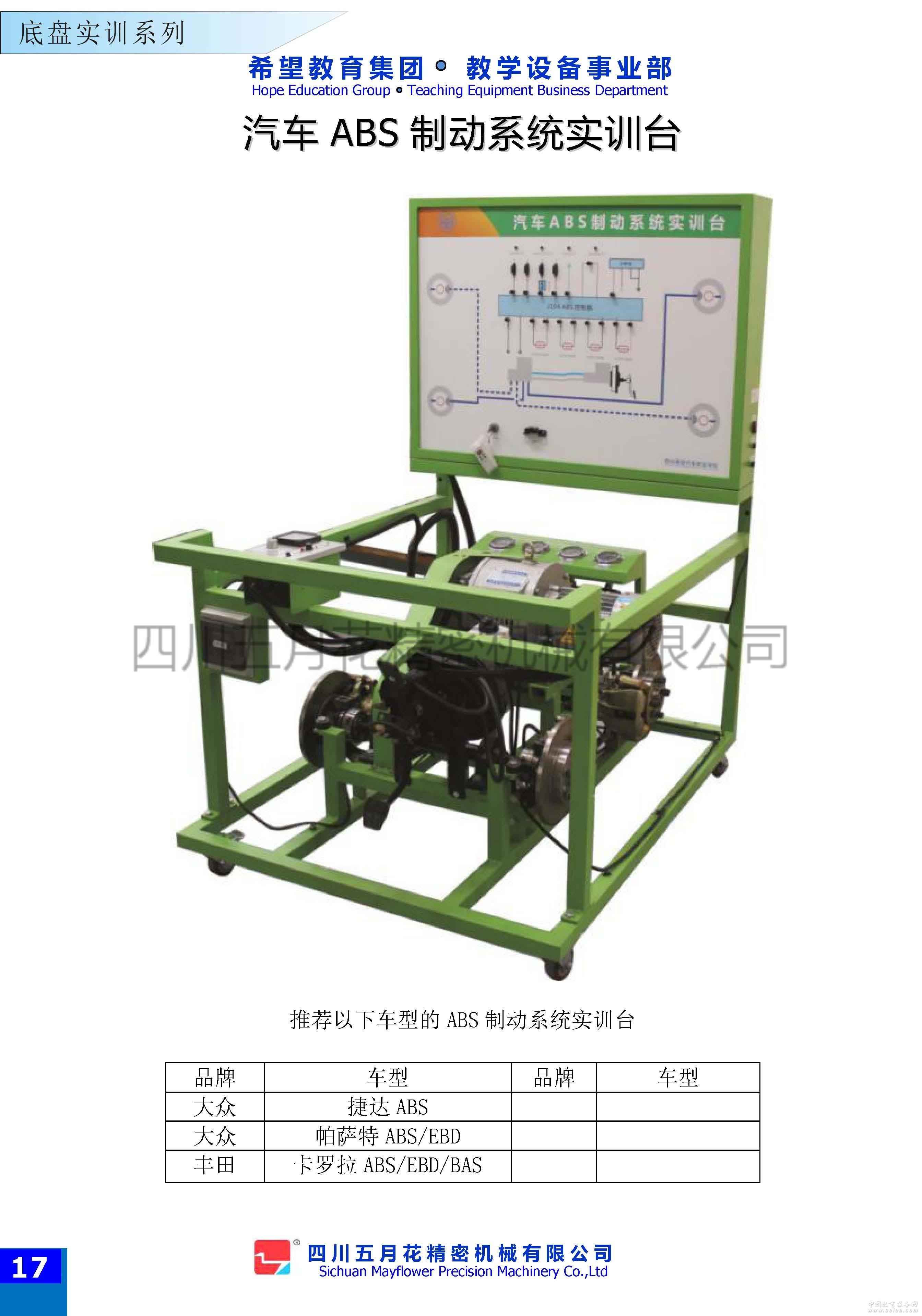 該設(shè)備采用大眾捷達汽車ABS制動系統(tǒng)為基礎(chǔ),配有ABS系統(tǒng)工作原理圖,真實展示緊急制動時ABS系統(tǒng)工作過程。適用于各類院校和培訓機構(gòu)汽車底盤構(gòu)造與維修實訓的教學需要,完全滿足對ABS制動系統(tǒng)的結(jié)構(gòu)組成、動作演示等教學功能。