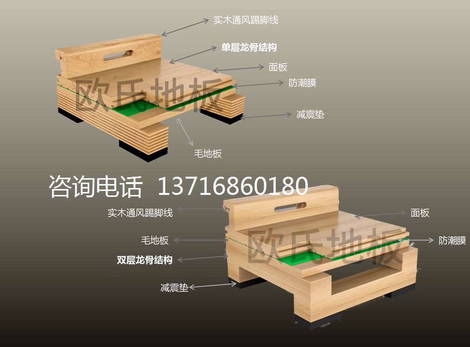 產品詳細介紹三大體育木地板特性介紹 體育木地板也稱運動地板,嚴格地說,應該是體育場館保證其功能的運動木地板系統。 1、運動功能 體育木地板系統應限度地滿足各種運動項目的技術特點,同時盡可能避免運動人員承受不必要的負載和消耗過多的能量所具備的功能。 2、保護功能 體育木地板系統能盡量減輕運動人員在跑步、球類比賽和訓練時所能承受的負載,以及在一些需要特殊保護的運動項目中減少運動人員落地時受傷的頻度。 3、技術功能 體育木地板系統能夠長時間滿足運動功能和保護功能,并且能適應運動設備與器械的使用、移動以及其它應用所具備的一些性能。 耐磨、加厚、減震、舒適、彈性好,這就是體育運動地板相比于其他地板最獨特的優勢之一。在如今倡導環保的社會,體育運動地板作為環保優勢的產品,能夠保證環保,全新材料生產,從購買基礎此材料開始,到加工生產,再到后來的地板檢測,每一道程序都經過嚴格的把關控制 這種不是用于家居的地板來說,我們通常都不會過多的去了解它。同時體育運動地板的價格計算方法,大部分就更不得而知了。其實體育運動地板的價格計算方法很簡單,和家居地板鋪設差不多,需要一定的損耗,所以體育運動地板在鋪設的時候,一定要計算地板損耗價格。比如需要鋪設100平方米的體育地板,而計算的損耗大概是6%左右,用鋪設的面積乘以損耗(100*0.06),就是真正的體育運動地板價格。在正常的體育運動地板數量上多購買一些。