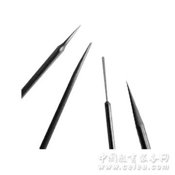T-4 軟針不建議在敏感節點使用,因為會產生電容負載的問題,在此環境下,建議使用高阻抗Picoprobes系列探針。 ST 系列硬針是0.020 inch (0.51mm) 直徑鎢材質針桿經過精密電化學加工成為不同的針尖直徑,長度為1.5inch(38.1mm)的探針。這種探針應用與絕大多數的芯片電極點測和線路點測。 ST系列硬針可以用于與刮擦或者刺穿芯片表面鈍化層。該探針可以選擇表面鍍鎳,如果選擇鍍鎳則型號后面增加“NP”。 |