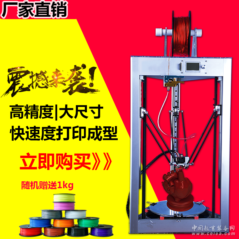 依迪姆(Yidimu)3D打印機是深圳市依迪姆智能科技有限公司自主研發、生產的桌面型3D打印機。設計原理基于FDM(Fused Deposition Modeling)。屬于快速成型技術中的一種,它是以數字模型文件為基礎,運用塑料通過逐層堆疊積累的方式來構成物體的技術(即“積層造型”)。成型的材料具有高強度和高穩定性,能進行鉆孔、攻絲、上色等后期處理。 依迪姆智能科技有限公司作為從事先進裝備生產的高科技制造企業,公司具備雄厚的科研基礎和研發實力。如今依迪姆3D打印機推出全自主創新產品(三角洲系列)打印機,產品采用單噴頭設計,打印更穩定 精度可達100微米。使用環保材料PLA ABS等多種耗材。打印產品高精度,綠色環保。展望未來,我們必將有更多功能齊全的3D打印機。 依迪姆致力于建設3D打印數字化生態系統,業務領域以3D打印機的研發、制造、銷售為主,延伸到3D教育課程服務、3D網絡云平臺服務及3D打印一體化服務等。3D打印機應用之廣泛 。 |
