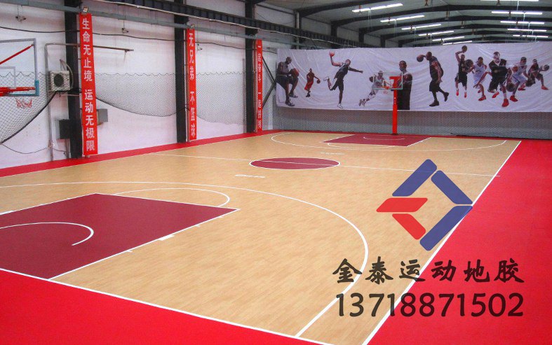 2) 舒適性 金泰籃球場專用地板表面經特殊處理,與燈光亮度吻合,不會吸光和反光刺眼,能更好的保護運動員的眼睛,不易產生疲勞,最大厚度達8.0mm,配以適當發泡底層為緩沖層,使其更具有減震性和反彈。有效地減輕了運動員的腿部沖擊力,腳感舒適,更好的避免了運動損傷,提高運動員水平的發揮。 3) 耐久性和耐磨性 金泰籃球場專用地板采用100%純PVC優質材料,面層經特殊高環保高科技材料TPU技術處理,及具最佳耐久性和耐磨性,從而增加了地板的使用壽命。 4) 保養容易 金泰籃球場專用地板表層(特別是面層添加特殊高科技TPU處理的表層)對外界污染有排除能力,如表面污染,用干凈拖把、清水刷洗即可。重點臟污可用中性清洗劑清洗。單氣孔封閉式pvc底紋經過澀感、防水、防霉、抗菌處理,使產品本身具有自我保護的屏障,從而增強了產品的自我排污的功能!