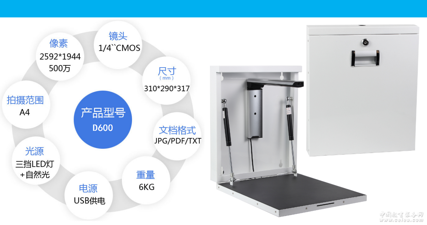 產品詳細介紹(一)硬件部分 1.高解析度CMOS專業圖像傳感器,像素800萬像素, 動態視頻10-15幀/秒,1080P動態視頻達到25-30幀/秒,最大幅面A4/A5。 2.可識別、拍攝、自動調整白平衡,自動調整曝光; 3.配白光LED燈,2排6個LED燈,波速開關 4.USB2.0接口供電, 直接USB直通電腦,無需外接電源。節約能源,綠色環保; 5.銀色鋁合金屬材質,創新設計,外觀莊重,輕便高檔。靈活的結構設計,展開尺寸;370mm*300mm350mm 合攏尺寸;350mm*300mm*60mm 6.箱體采用冷軋鋼材質,面板采用兩個金屬氣壓桿支撐,內置機箱鎖安全防盜,壁掛式安裝; USB直接連接一體機設計,便于安裝和維護;展臺和箱體的連接采用手擰螺絲設計,方便設備維修 (二)軟件部分 1.快速掃描、快速抓圖、一秒鐘掃描存檔。 2.實物展示,動態下視頻展示功能。動態狀態下支持熱拔插,視頻放大縮小,全屏展示。 3.強大的OCR軟件支持180多種語言的識別。 4.支持連續遞增式拍攝并自動將圖片按順序成單頁或者多頁PDF文件,無需轉換。 5.支持錄像 6.支持自動切邊,二值化拍攝圖像實時旋轉,圖像合并,自動定時拍照,一鍵PDF文件拍攝,多頁PDF文件拍攝,自由命名,時間命名,快遞單號命名,四屏同屏對比。 7.支持一維和2維識別條碼識別 8.支持身份證正反面無縫合并拍攝。 9.支持彩色拍照去底色. 支持動態畫面360度無級旋轉和100%-600%無級數碼變焦(以鼠標中心), 集成軟中控(即可一鍵切換視頻展臺、掃描管理、白板批注、課件錄制、等) 10.色彩位數:24位,文檔格式:PDF、WORD,錄像格式:AVI、WMV,圖片格式:JPG、TIF、PDF、BMP、PNG。 |