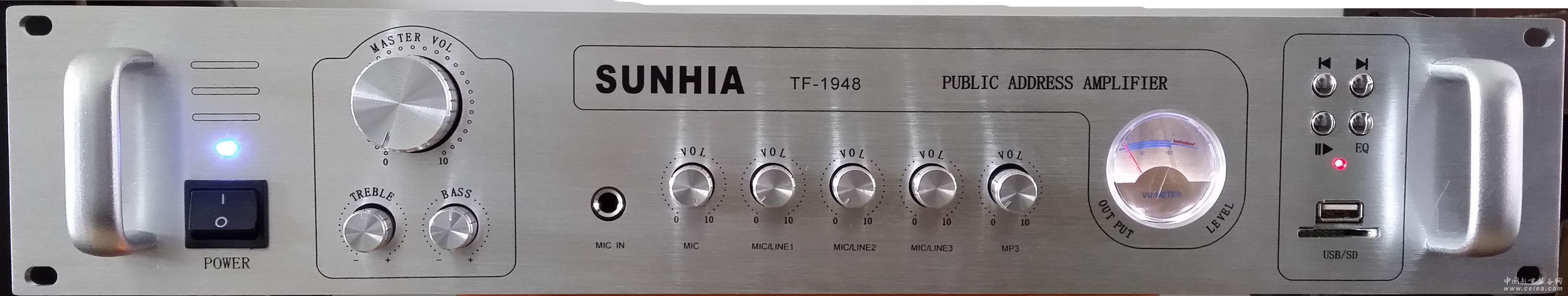 產品詳細介紹專業的具有自動輸出幅度控制的放大器:各檔專用音頻限幅放大器均具有自動專業音色控制電路,可自動防止聲音失真、信號過載、工作溫度過高及輸出短路保護等,同時增加了功放的平均輸出功率。 功能:1.信號保護技術,抑制信號失真,2.一路話筒輸入,3.第一路話筒優先,4.三路話筒/線路可選輸入,5.70V、100V定壓輸出和4~8,6.定阻輸出,7.USB/SD播放,8.一路輔助輸出,9.總音量控制,10.過熱保護,11.輸出短路保護,12.高檔電表電平指示,13.高音和低音音調調整,14.各通道獨立音量控制