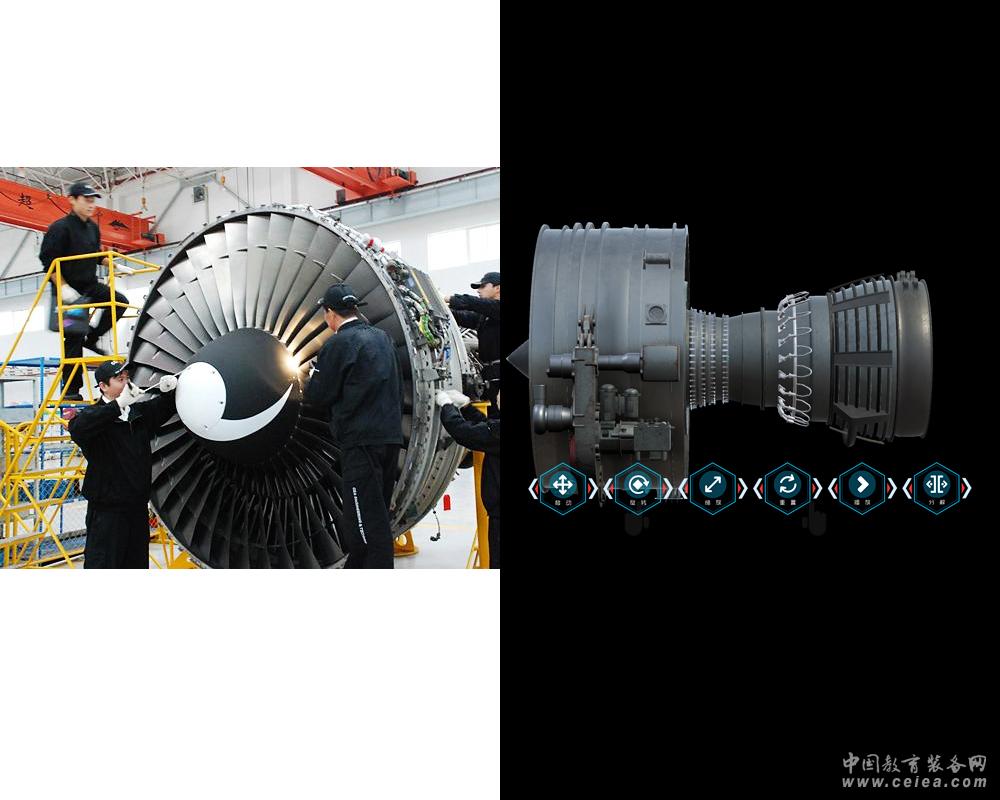 航空機務培訓中的一些高價值和復雜的部件,如航空發動機、起落架等,通常無法讓學員親自拆裝,而泛美視界的AR 輔助教學系統可通過AR眼鏡將一臺完整的發動機呈現在實際教學環境中,讓老師和學員對發動機進行移動、縮放、旋轉、分解等操作,以便學員了解每個零部件的構成及功能,同時可全方位觀測發動機的實際運行狀況。