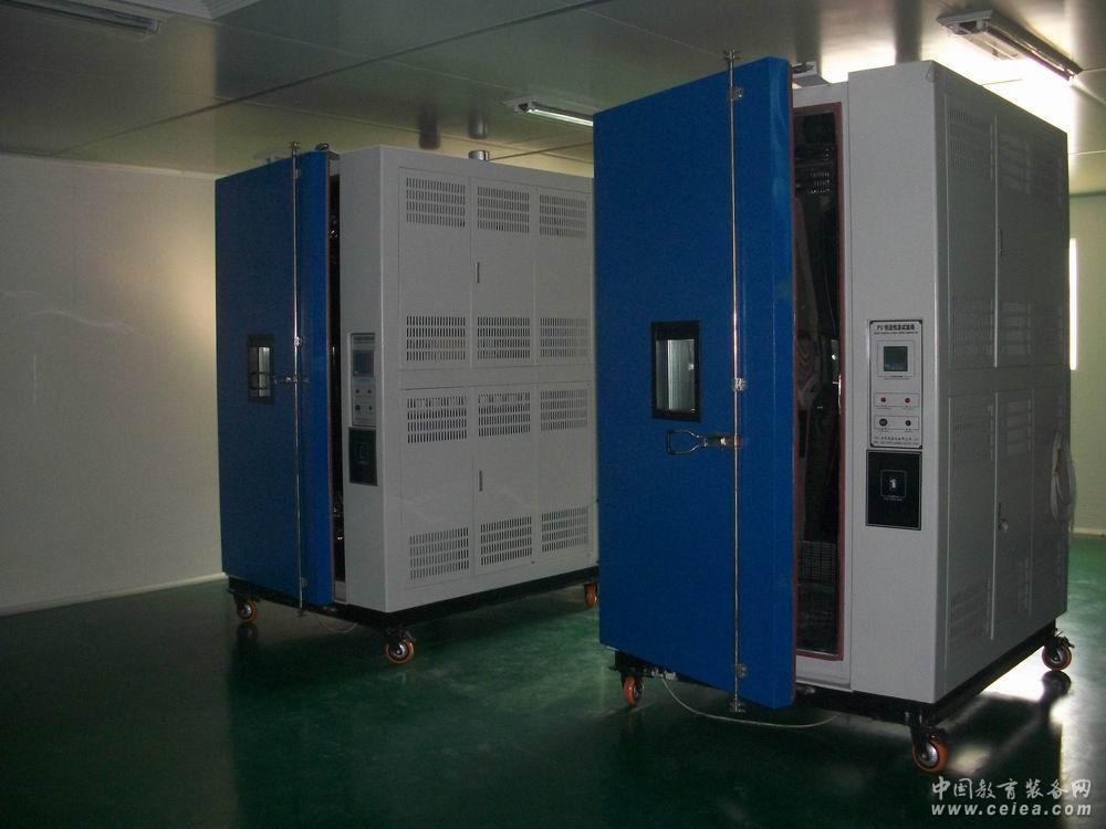 技術參數: 溫度范圍:-40℃~+100℃; 溫度波動度:≤±0.5℃; 溫度偏差:≤±2℃(空載); 升降溫速率:1.0~3.4℃/min(線性可調) 濕度范圍:30%~98% R.H(溫度在25℃~80℃時)(可設定恒濕) 濕度波動度: 30%~98% R.H 濕度偏差: ±2.5%R.H(濕度≥75%R.H) ±3%R.H(濕度≤75%R.H) 負載能力:待定; 工作室尺寸:D1200×W1000×H2200; 外形尺寸(約):D3800×W1650×H2850 電源:三相五線制AC380±10%,50±0.5Hz; 安裝功率:約52KW。 質量保證 公司嚴格按 ISO9001:2000質量管理體系,ISO14001:2004環境管理體系,組織產品的設計和生產。 現場安裝調試設備,并為客戶培訓操作使用人員。 在用戶遵守產品安裝及使用規則的條件下,產品自發貨之日起十二個月之內,因制造質量問題不能正常工作時,我公司無償為用戶維修。 對保修期外的產品,我公司提供長期的技術服務。 售后服務響應時間:24小時內響應。