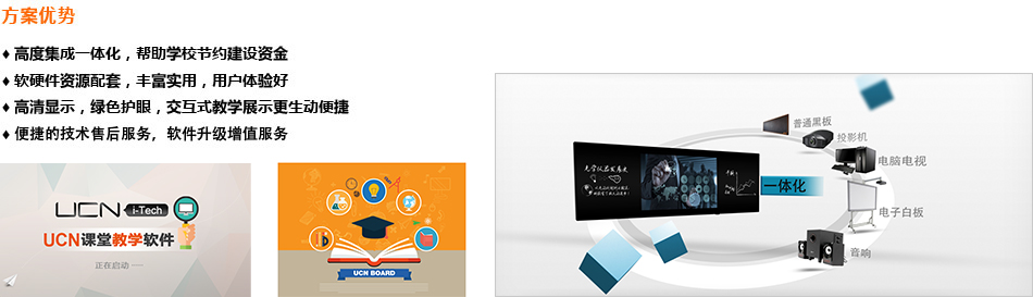 現在的多媒體已經逐漸普及走入到每一個普通教室,形式一般是投影白板和教學一體機,師生們在享受多元化教學的同時,也在不斷的累積著困擾——光污染對學生視力的影響、上下推拉黑板對老師體力的耗費、與腦海里對黑板外觀固有認識的違背、無法粉筆書寫帶來的困擾……UCN智能黑板方案在上述背景下應運而生,它采用全球領先的納米觸控技術將傳統的手寫黑板和多媒體設備相結合,在粉筆板書和多媒體應用之間輕松切換。