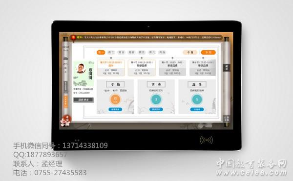 電子課程表:可實時從校園系統(tǒng)中采集課程信息,也可手工錄入課程信息,包括課程名稱、任課老師、當(dāng)前課程、下節(jié)課程等。
