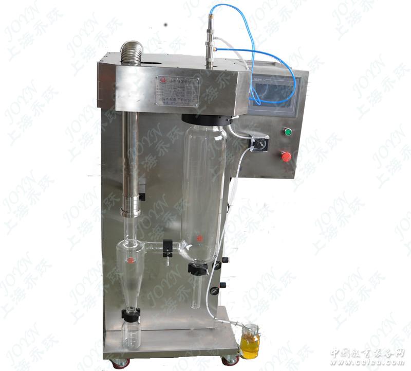 產(chǎn)品詳細介紹主要特征: 1.小型噴霧干燥機采用彩色大觸摸屏操作,全自動控制和手動控制相結(jié)合,十段程序控溫,自帶記憶功能,國內(nèi)唯一: 2.全自動控制:一鍵式開機,設(shè)定噴霧工藝參數(shù)后,溫度到達預(yù)定溫度,蠕動泵自行啟動,觸摸屏上顯示運行動畫,運行流程清晰顯示;關(guān)機時只需按停止鍵,機器自動安全關(guān)機。 3.手動控制:如需在實驗過程對工藝參數(shù)進行調(diào)整,可方便切換至手動狀態(tài),整個實驗過程彩色觸摸屏動態(tài)顯示(動畫)。 4.關(guān)機保護功能:關(guān)機時只需按停止鍵,機器除風機外立即停止運行,保證設(shè)備不會因為誤操作(強行關(guān)風機)而導(dǎo)致加熱部分燒壞。 5.噴霧、烘干及收集系統(tǒng)采用透明的優(yōu)質(zhì)高硼硅耐熱玻璃材料制造,使得噴霧干燥過程在無污染及最穩(wěn)定的環(huán)境下進行,且使整個噴霧干燥實驗進程可直接觀察,為科研人員掌控實驗進程及實驗結(jié)果提供了極大的便利,并能及時發(fā)現(xiàn)解決問題。所有玻璃元件易拆卸,易清洗。 6.小型噴霧干燥機內(nèi)置進口全無油空壓機,噴粉的顆徑呈正態(tài)分布,流動性非常好,而且噪音非常低,小于60db,符合國家實驗室噪音標準; 7.二流體噴霧的霧化結(jié)構(gòu),整機采用優(yōu)質(zhì)不銹鋼材料精密制造,設(shè)計緊湊,無需附屬設(shè)備,方便使用,歷久如新。 8.為了滿足用戶在實驗范圍調(diào)節(jié)各項參數(shù)的要求,在干燥溫度控制的設(shè)計上采用實時調(diào)控PID恒溫控制技術(shù),使全溫區(qū)控溫準確,加熱控溫精度±1℃。 9.為了保持樣品的純凈,配備了進風口過濾器。 10.進料量可通過進料蠕動泵調(diào)節(jié),最小樣品量可達50ml。磁力攪拌器可選 11.干燥后的成品干粉,其顆粒度較均勻,95%以上的干粉在同一顆粒度范圍。 12.小型噴霧干燥機針對黏性物料,設(shè)有噴咀清潔器(通針),在噴咀被堵塞時,會自動清除,通針的頻率可自動調(diào)整; 13.創(chuàng)新的塔壁吹掃裝置,物料回收率更高。 14.自動清掃功能,大大加強干燥樣品回收率。 15.干燥塔自動清洗功能,無需手動清洗,大大節(jié)省實驗時間。