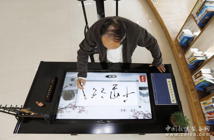 書法體驗機(jī)模擬和還原傳統(tǒng)書法的真實(shí)書寫環(huán)境,普通毛筆在電子屏上書寫,書寫痕跡可以實(shí)時輸入和儲存。