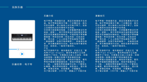 4、相關樂器:是對本課所涉及到的樂器的拓展介紹。右下角是樂器圖片點擊播放圖標可播放樂器的聲音。左邊是對此樂器的文字介紹。