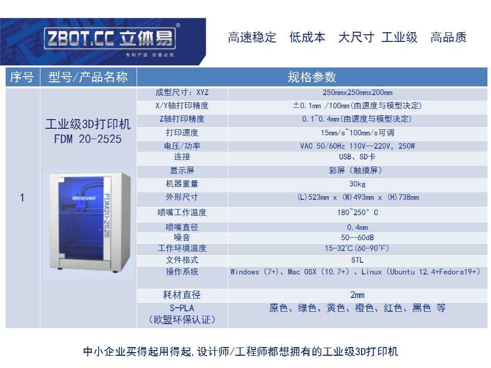 立體易FDM-20-2525 大尺寸工業級3D打印機