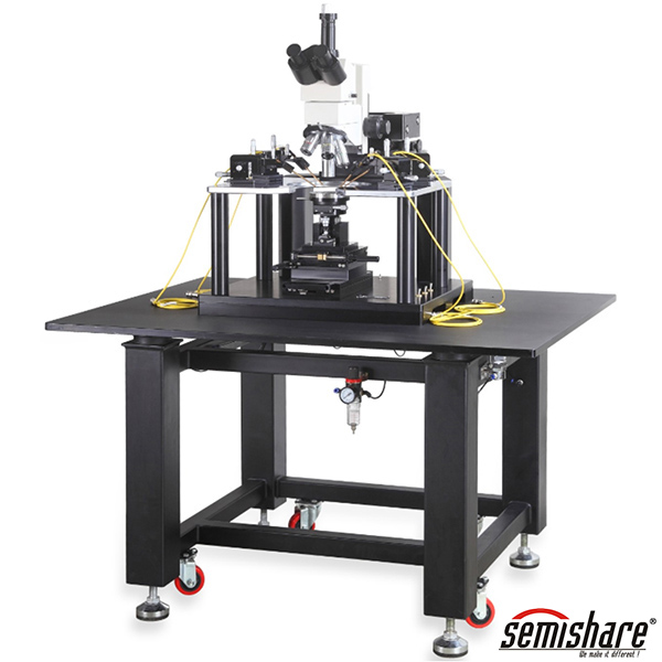 產品詳細介紹晶圓測試探針臺 型號 SE-4 SE-6 SE-8 SE-12 外形 580mm長*620mm寬*730mm高 640mm長*700mm寬*730mm高 660mm長*660mm寬*700mm高 1030mm長*820mm寬*730mm高 重量 約70KG 約80KG 約85KG 約180KG 電力需求 220VC,50~60Hz 樣品臺 尺寸 4英寸,可360度旋轉 6英寸,可360度旋轉 8英寸,可360度旋轉 12英寸,可360度旋轉 X-Y行程 4英寸*4英寸 6英寸*6英寸 8英寸*8英寸 12英寸*12英寸 Z軸行程 6mm(快速切換)/6mm(微調) 移動精度 10um/1um 樣品固定方式 真空吸附 背電極測試功能 有,樣品臺電學獨立懸空 針座平臺 U型平臺,最多可放置6個針座 U型平臺,最多可放置8個針座 U型平臺,最多可放置10個針座 U型平臺,最多可放置12個針座 光學特性 顯微鏡行程 X-Y軸行程2英寸*2英寸,Z軸:50.8mm 顯微鏡移動精度 1um 切換鏡頭方式 顯微鏡快速傾仰30度 放大倍數 16~100X/20~4000X 鏡頭規格 目鏡:10X;物鏡:5X,10X,20X,50X,100X(選配) CCD像素 50W(模擬)/200W(數字)/500W(數字) 點針規格 X-Y-Z行程 12mm-12mm-12mm/8mm-8mm-8mm 機械精度 10微米/2微米/0.7微米/0.1微米 漏電精度 10pA/100fA (配置屏蔽箱時) 接口形式 香蕉頭/鱷魚夾/同軸/叁軸接口 應用方向 芯片及LD/LED/PD測試,PCB/封裝器件測試,射頻測試等。 可選附件 顯微鏡傾仰裝置(傾仰30度) 高低溫樣品臺 光強/波長測試選件 顯微鏡氣動升降裝置 屏蔽箱 射頻測試附件 激光微加工 轉接頭 有源探頭 探針卡夾具 防震臺 低電流/電容測試 顯微鏡暗場/DIC/Normarski 檢測光強/波長測試接口部件 鍍金卡盤 兼容積分球測試選件 液晶漏電分析套裝 同軸叁軸卡盤 光纖夾具耦合測試選件 高壓/大電流測試套件 樣品臺快速升降,微調升降裝置選件 PCB/封裝夾具測試選件 加熱臺 樣品臺旋轉微調選件 特殊定制 特點 1.顯微鏡龍門柱式設計,可使顯微鏡在平面內移動。 2.顯微鏡可傾仰或氣動升降,便于更換物鏡。 3.可升級做射頻,大電流方面的測試和激光修復應用。 4.同軸驅動卡盤,移動精度高。 特點 緊湊的結構 同軸絲杠傳動結構,線性移動 實惠的價格 無回程差設計 兼容高倍率金相顯微鏡,可微調移動 1微米以上電極/PAD測試 高等院校/研究所/公司實驗室使用 LD/LED/PD的光強/波長測試 最大可用于12英寸以內樣品測試 材料/器件的IV/CV特性測試 |