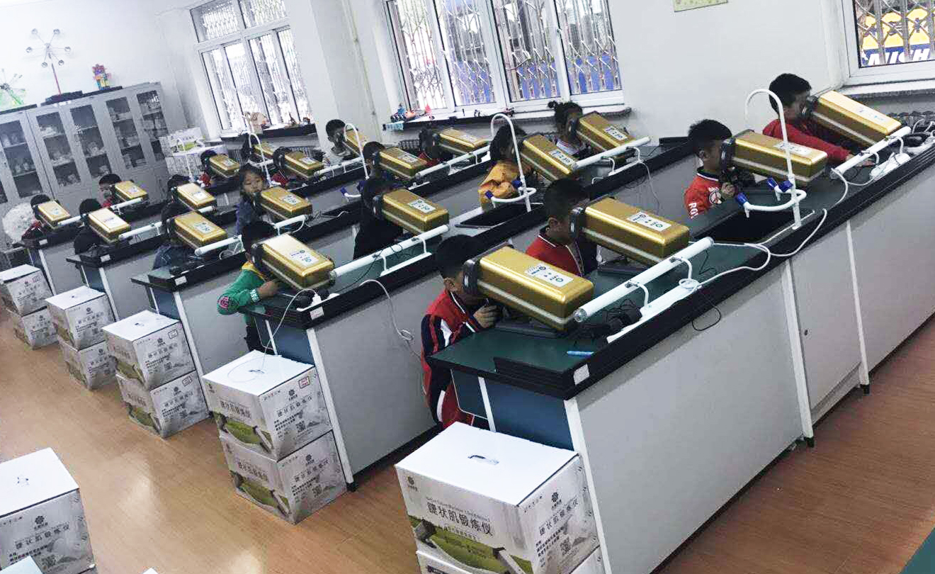 兒童青少年每天大部分時間在學校度過,通過狠抓落實校園近視防控,才能為教育新發展新跨越開好局、起好步、奠好基,才能讓全國近視防控工作有突破性進展。永康學生近視防控教室,拿出一間教室,放置30-50臺永康視力提升機,學生按班級建制每周進行一次20-40分鐘的訓練,一般經過1-2個月5-10次訓練,會達到裸眼視力平均提升2行,近視率平均下降10%以上的良好效果。這間教室,適用于所有學生。不近視的學生,經常參加訓練,可以預防近視的發生;近視的學生,通過視力提升訓練,能夠控制近視度數,提升視力。