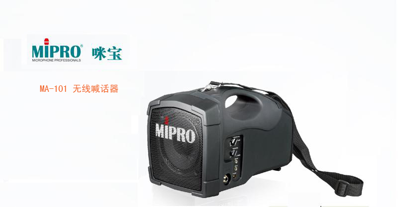 產品詳細介紹MA-101(—無線喊話器 主要特點: • 袖珍輕巧便于肩掛、手提、放置桌面或架設在三角架上使用。 • 首創隱藏式接收天線設計,不但避免折斷故障,而且具有極佳的接收效果。 • 智能型充電式電源,充電4小時,可連續使用8小時,停電照常全功能動作。 • 可連接錄放音機、隨身聽或其它音源混合輸入同時擴音。 • 利用無線麥克風,可以遙控一臺或多臺喊話器同時輸出清晰強勁的聲音。 • 采用高傳真、高效率的擴音電路,讓您的金嗓子以最強勁的原音重現。 • 不僅適合多元化的教學,并具高機動性的特點。 • 能改善學習注意力及成效,增進語音辨識及學習成效 咪寶陜西代理 189 91 27 09 20 接收模塊 內建UHF或VHF石英控制單頻道固定接收模塊 最大輸出功率 30W(rms)/4Ω,42W(max)/4Ω T.H.D. 低于1% 頻率響應 60Hz~15KHz 喇叭 5吋全音域 音源輸入 MIC及LINE輸入插座各一 操作模式 直接在喇叭箱機體上操作 電源供應 內建12V/2.9AH充電式電池及100~240V AC交換式電源供應器 充電及使用時間 充電4小時(自動充電管理)可連續使用約8小時(語音擴音) 尺寸 160(寬)×178(高)×285(深)mm 重量 約3.1公斤 外觀顏色 黑色 搭配發射器 MH-801,MT-801a,