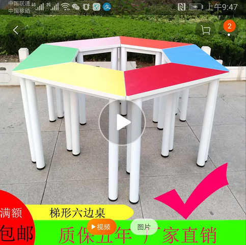 學校閱覽桌圖書館心理室輔導培訓桌閱讀桌團體活動桌梯形桌