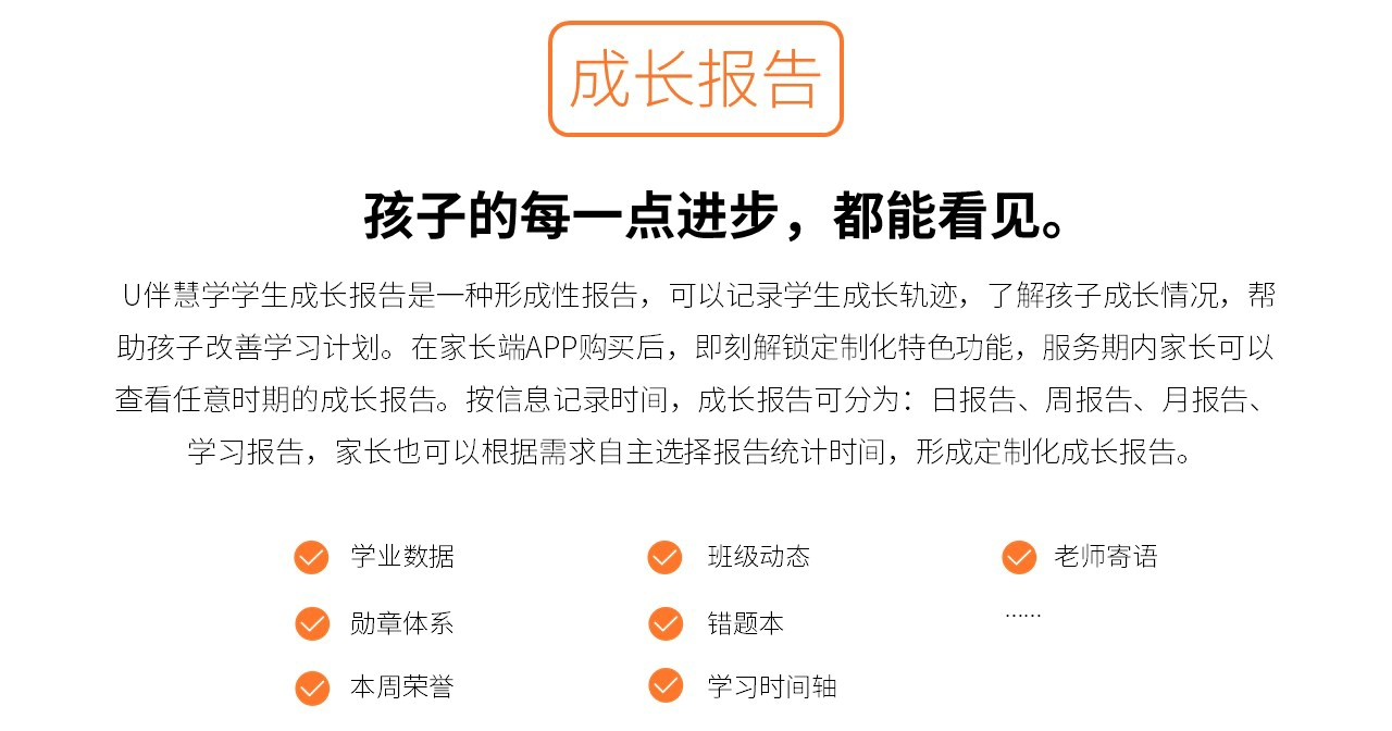 U伴慧學(xué)家長APP可實(shí)現(xiàn)家校溝通,協(xié)助家長獲取教師發(fā)布的學(xué)習(xí)任務(wù)、學(xué)生學(xué)習(xí)報(bào)告、系統(tǒng)自動推送的個(gè)性化學(xué)習(xí)計(jì)劃。家長APP還可以了解學(xué)生校內(nèi)消費(fèi)、學(xué)生考勤、學(xué)生安全、課程表、課堂直播、班級圈信息的功能。