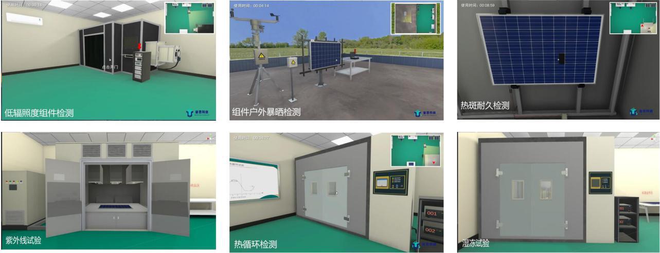 產品詳細介紹 光伏組件質量檢測仿真實訓讓學員在虛擬場景中學習根據IEC61215標準使用各種檢測設備對組件進行質量檢測,從而了解組件的關鍵技術參數以及發現組件典型缺陷。