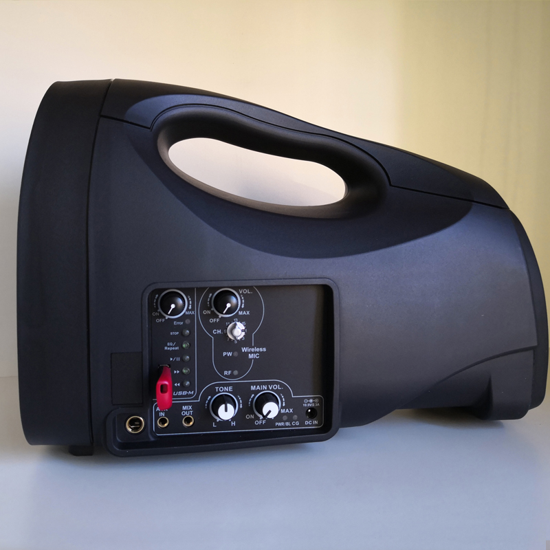 功能面板配置 功能面板設計:從無線麥克風接收機、數位播放機到卡式錄音座,皆為模組化設計,可依使用者需求變換搭配功能面板。 第一層:配置兩組1/4Din無線麥克風接收機,并采用先進的PLL系統和隱藏式天線,讓無線麥克風的使用更便利。 第二層:配置多媒體光碟播放機,不僅支援播放CD、VCD、DM3等格式外,同時還設置USB、CD/MMC卡插槽,方便使用者搭配各種數位檔案使用。 詳細參數 喇 叭 4ohm / 8" 全音域喇叭 接收模組 UHF PLL 單接收或雙接收 16 頻段數字顯示,可供選擇 (可擴充至四組) 頻率范圍 UHF 600-960 MHz ( UHF 863-865 MHz) 功率輸出 100W (Class-D 擴音機) 功能選配 防震CD/CD-DM3播放器/USB/SD卡插槽( 附遙控器 ) 充電時間 鉛酸電池 6-8 小時/鎳氫電池 4-5 小時 使用時間 平均 3-9小時 (視音量大小而定) 電源供應 100-240V (90-264V) 交換式電源 充電電池 12V/5Ahx2 / 1.2V/1.3Ahx4 結構材料 防水耐壓塑鋼 特殊設計 四段式LED電池電量顯示燈;省電設計;使用中可同時充電;數位迴音系統;無線麥克風優先系統;2組/1.2v 麥克風可充式自動充電座; 手握麥克風、腰掛式發射器置物箱;隱藏式中置拉桿 尺寸(mm) 500x320x290(HxWxD) 重量(N.W) 約15-16 公斤 |