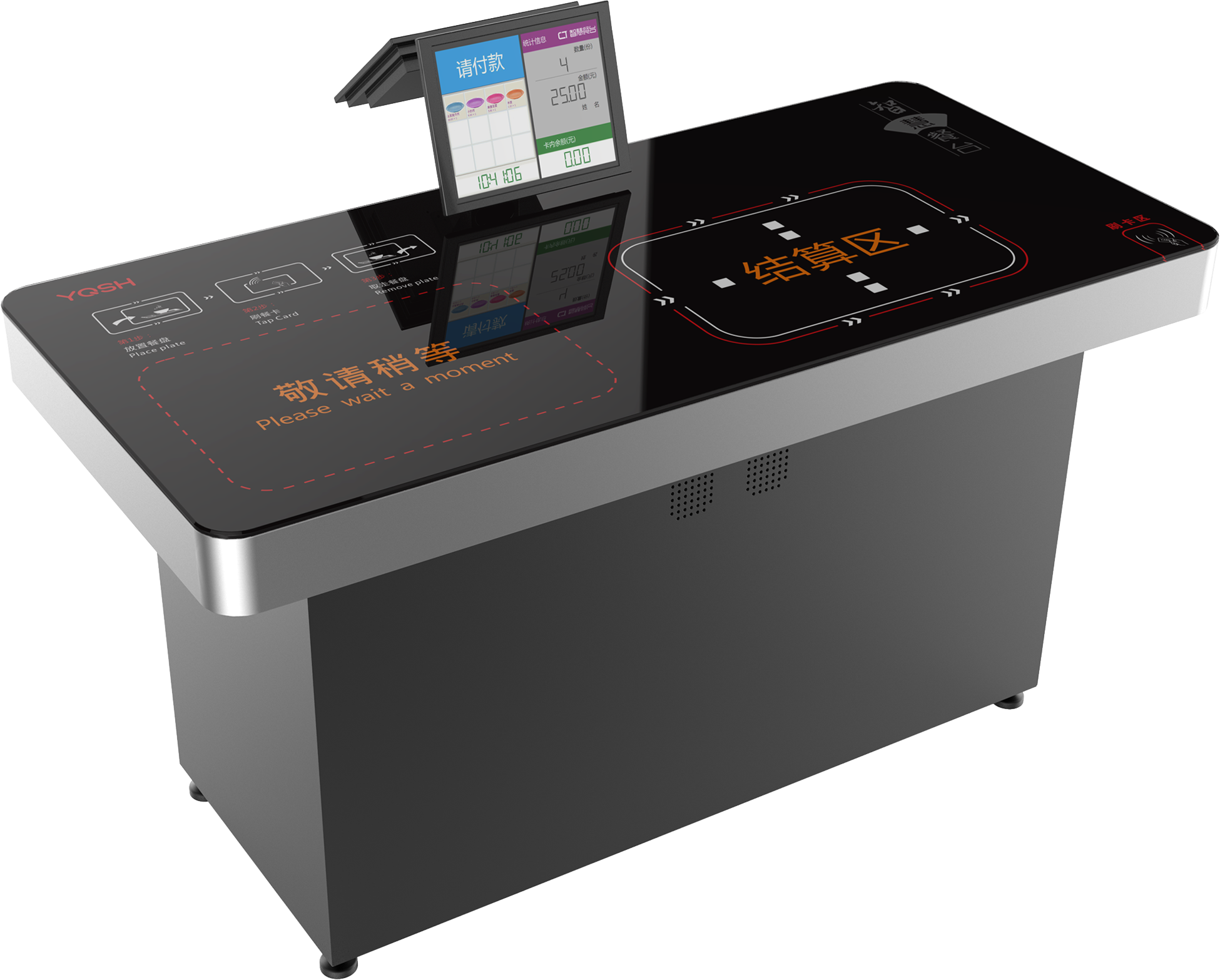 智慧餐臺:顧客自助選菜以后,將整單菜品放入智慧餐臺結算區,實現一秒一單,快速結算,與人工核算相比,具有速度快、無差錯,省人工的特點。