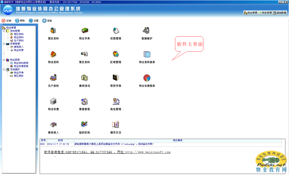 產品詳細介紹維新物業管理系統特點:軟件功能涵蓋物業公司日常收費、報修、物料、租賃、管理工作全過程。適用于小區、公寓、學校、園區、寫字樓、商場;高校物業教學、培訓等。軟件功能模塊有:資料管理、微信交費報修投訴、財務管理、租賃管理、日常工作、行政辦公、統計報表、基礎數據管理、系統管理。操作界面簡單明了、直觀、靈活、功能強大、界面設計科學合理、操作簡單、軟件功能個性化強,并可根據物業公司的具體情況進行二次修改。軟件功能詳細介紹咨詢:028-85171841,QQ:317707346 |