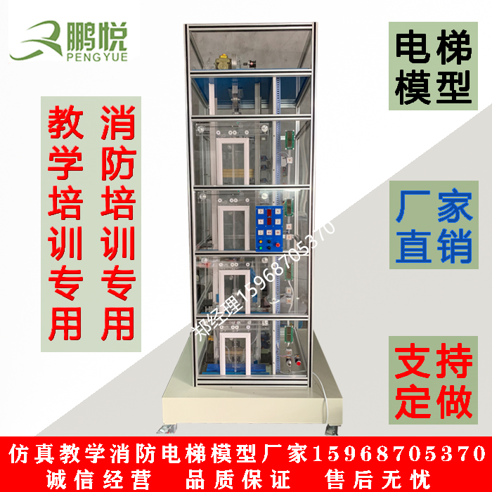 本電梯是根據最常見的升降式電梯結構,采用透明有機材料制成,其結構與實際電梯完全相同,且幾乎具備了實際電梯的所有功能。為了便于教學,電梯大部分部件均是采用透明有機材料制成,使得電梯的內部結構一目了然;同時,電梯的運行過程,以及每個動作都十分明了,且可以反復實際動手操作。使學生能夠很直觀、透徹地了解、掌握電梯的結構及其動作原理,達到事半功倍的效果。解決了以往電梯教學中單純的理論教學方式或是參觀實際電梯時所帶來的不安全,無法全面了解其內部結構及運行過程等種種實際問題。電梯的電氣控制系統采用可編程控制器(PLC)實現邏輯智能控制,交流變頻調速(VVVF)驅動,其硬件構的組成及功能與實際電梯完全一樣。具有自動平層、自動開門關門、順向響應轎廂內外呼梯信號、直駛、電梯安全運行保護以及電梯急停、慢上、慢下、照明、風扇等功能。且具有性能可靠、運行平穩、操作簡單、能耗低和便于教學等特點。