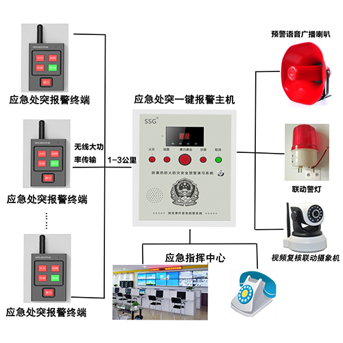 產品詳細介紹6、一鍵式報警器,一鍵式應急聯網報警系統是應對校園突發事件而設計的一套應急處理程序。在突發事件發生時,學校教室,學校門口等地方,可以通過可以按下有線緊急呼叫按鈕或者無線緊急呼叫按鈕,警衛室報警主機即可鳴響高音警號聲光警號,主機面板顯示報警防區,同時報警信息會快速撥打校長等負責人手機或辦公電話。系統簡介 1、社會應急一鍵式報警聯網系統是深安基于云計算、物聯網技術、移動互聯網技術、GPS服務為一體開發的安防平臺,適用于于城市街道、廣場、車站、學校、醫院、單位的一鍵式應急報警以及農村群防群治十戶聯防等領域。