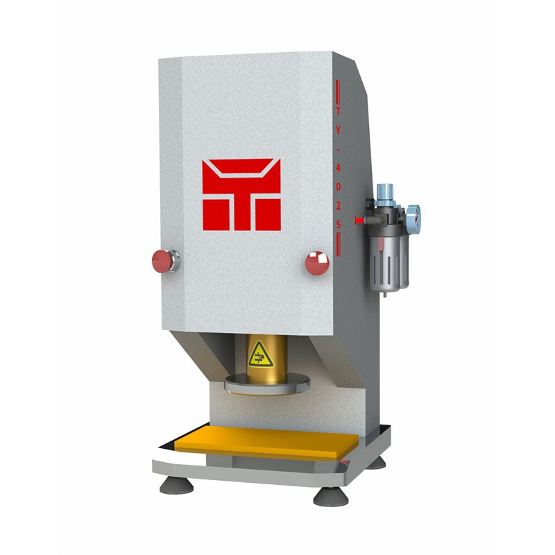 型號 TY-4025P 最大壓力 28KN(基于0.7Mpa氣源) 行程 100mm 工作臺尺寸 300mm×200mm 壓盤尺寸 Ф150mm 尼龍墊板尺寸 150×200mm 氣源 0.4~0.7MPa 平行度調整裝置 試樣表面平整度允許偏差±2mm 外形尺寸 H757xD431xW363mm 凈重 110 kg