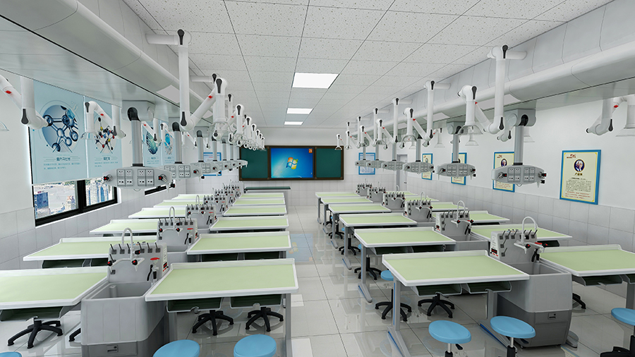 東方Sky-Docking實驗室基礎設施包括模塊化的水、電、氣、網絡、通風管道等艙體設施和集成式電動搖臂系統所組成的吊頂單元;師生實驗桌椅和多功能移動水槽等組成的地面單元;借助中央智能控制系統,可實現對Sky-Docking系統的智能集中控制,滿足師生安全、高效管控各類試驗設備,并充分拓展實驗室功能應用。三者結合,構成完整的理化生實驗室的主體系統。
