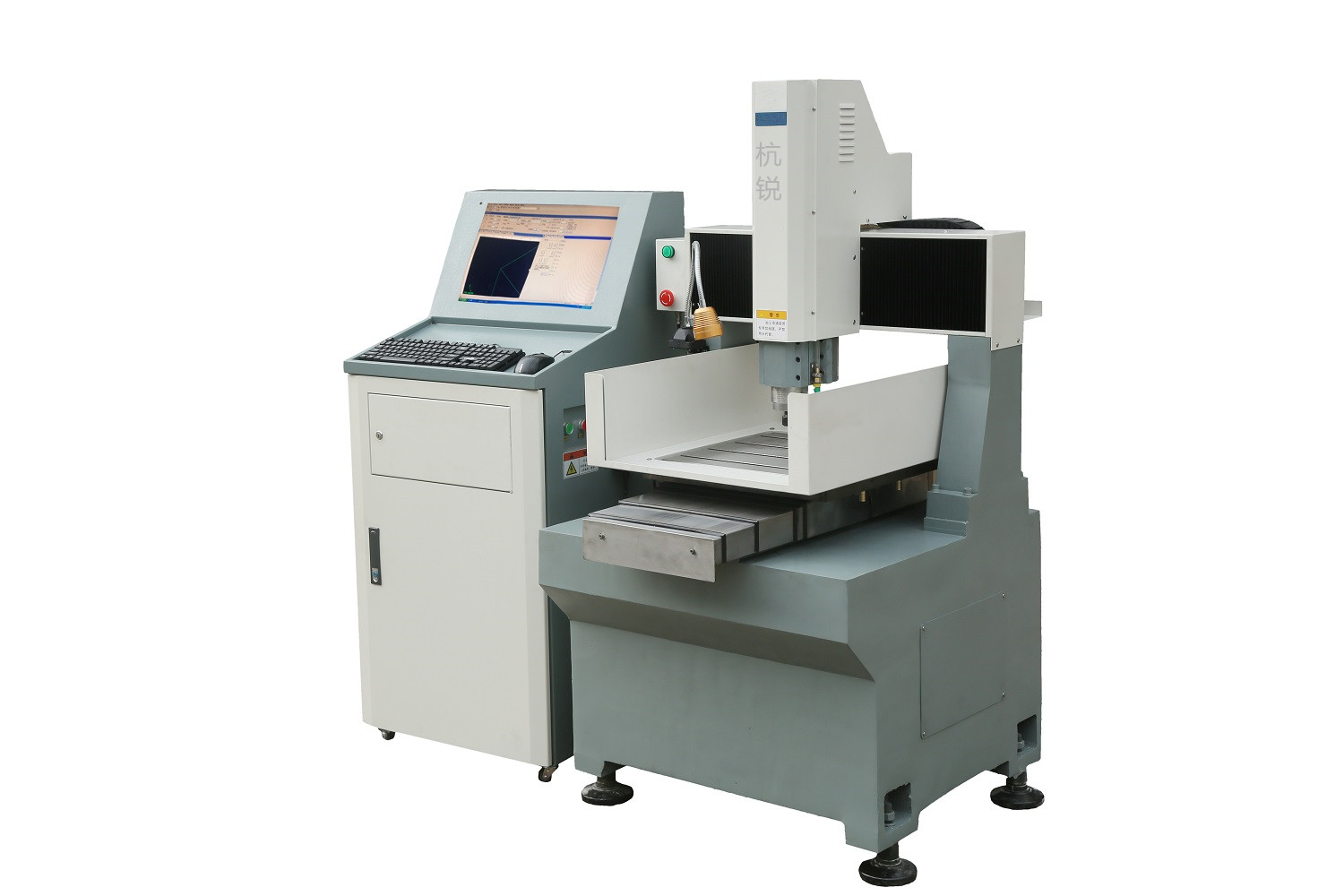 產品詳細介紹機器簡介: 特點: 整機采用鑄造件;精密直線矩形導軌,有預緊、剛性好、高精密;研磨級精密滾珠絲杠有預緊,高精密;雕刻控制系統軟件操作簡單,易學易用,易于掌握,接口采用國際標準G代碼指令,兼容國內、外編程軟件。驅動電機采用新型混合步進,具有編碼反饋功能,大大提高機床穩定性。應用:主要適用燙金模、高頻模、熱切模、模具刻字、有機玻璃、PC加工、浮雕等DJ440-NB 機床主要配置單復雜工藝加工。 序號 配套件名稱 規格及參數 1 控制系統 上海維宏NK260 2 臺灣上銀精密滾珠絲桿 X、Y、Z軸 Φ20 mm 3 臺灣上銀直線導軌 X、Y、Z軸 H25mm 4 混合伺服電機 創偉60(江蘇) 5 混合伺服驅動 創偉CWDS660(江蘇) 6 精密高速電主軸功率 華雕2.2Kw(江蘇) 7 主軸轉速范圍 0-24000rpm(無級變速) 8 NSK精密級專用絲桿組合配對軸承 7002 P5/6002 9 高頻變頻器 匯川2.2Kw(深圳) 10 國產電子手輪 明三益(江蘇) 11 風冷機 耀鵬(江蘇) 12 德力西電器組件 13 刀具夾頭規格 ER20-3.175/4/6mm(可選配) 14 最大夾刀范圍 13mm 15 自動潤滑油泵 0.5L 16 X、Y、Z軸運動定位精度 0.01mm 17 X、Y、Z軸重復定位精度 0.01mm 18 X、Y、Z軸最大工作行程 400×400×110mm 19 Z軸進料高度 180mm 20 工作臺尺寸 480×480mm 21 工作平臺平面度 ≤0.02mm 22 X、Y垂直度 0.015/400mm 23 主軸鼻端到工作臺距離 30-140mm 24 快速移動速度 10m/min 25 最高切削進給速度 8m/min 26 工作電壓 單相220V/50Hz±10% 27 機床外形尺寸 910×1010×1510mm 28 電柜外形尺寸 600×580×1350mm 29 機床鈑金外殼 半罩 30 床體重量 900Kg |