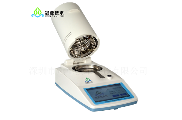 膠囊皮水分檢測儀原理: 《冠亞技術》7寸液晶觸摸屏膠囊皮水分檢測儀由深圳市冠亞技術科技有限公司冠亞技術產(chǎn)品,能夠快速測定漿料、粉末、膏狀,纖維,片材、顆粒等用來測量任何物料中各種形態(tài)樣品的水分含量,儀器根據(jù)熱解重量原理,在水分快速檢測領域中不僅提供一種快速烘干結(jié)構(gòu)的水分議,并取得一種新型水分儀加熱處理系統(tǒng)設備證書。測試開始水分測定儀測定樣品重量,然后樣品由內(nèi)置的鹵素干燥裝置和水分蒸發(fā)器快速加熱,在干燥過程中,儀器連續(xù)測定樣品重量并顯示丟失的水分。顯示部分采用了高分辨率的7寸液晶大屏幕,可直接通過全屏觸控的模式在液晶屏上直接進行測試參數(shù)、條件設定等,實現(xiàn)了無需人員培訓,人員看護、維護實驗過程,高科技自動模式;看說明書或者產(chǎn)品操作流程即可全面掌握并操作,同時根據(jù)說明書上的提示,即可簡單處理設備工作中出現(xiàn)的各類現(xiàn)象。