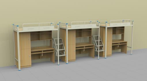 產品詳細介紹一、規格尺寸 1、單邊(三人位)尺寸:6640*900*2085mm 二、鐵件部分材質說明: 1、床立柱:采用 61*61mm(六邊形棱型管)的Q195 材質六邊形棱型管,立柱上下端加裝工程 塑料防護套件,保證架體與地面接觸無聲,防止學生擦掛; 2、床橫梁:采用 32*72*1.2mm 的 Q195 材質(P 型管)型材,冷軋鋼板采用一次性滾壓成型,增 加承受能力,整體牢固美觀; 3、護欄:采用 25*1.2mm 方管鑲 1.0mm 油壓成型鋼板; 4、床橫梁:采用 6 根/位 25*25*1.2mm 方管,增強承重能力; 3 六人間 (三人 位梯步 式)連 體公寓床 5、步梯:采用 25*25*1.2mm 的Q235 材質方管,步梯踏板采用 1.8mm 鋼板一次性沖壓成型,步 梯與床立柱連接; 6、床板:采用 12mm 厚 E1 級環保多層板; 7、鏈接方式:采用 25*195*2mm“H”型卡扣式連接(無螺絲連接,整體全隱裝); 表面處理:鋼件焊接采用二氧化碳保護焊,金屬表面經過打磨、脫脂、酸洗、水洗、中和、表 調、磷化、烘干,再采用杜邦塑粉靜電噴塑處理、高溫固化等工序。 三、木質家具材料說明 1、衣柜:采用上下兩層設計,突出最大儲物空間,衣柜上層內配置(直徑 19mm)不銹鋼掛衣 桿,基材采用 18mm 厚度的 E1 級環保板材制作;五金件:采用優質五金配件;柜門鎖:采用明鎖 暗掛,底部加裝 9mm 高靜音,防潮腳墊; 2、學習桌:基材采用 18mm 厚 E1 級環保板材,封邊:截面處采用優質 1.2mm 厚封邊條,桌面: 采用 25mm 厚E1 級環保板材,甲醛釋放量達到國家 E1 級環保標準,底部安裝 9mm 高的靜音防滑 防潮腳墊; 四、床體布局 1.床位長度采用 2 個1.92 米+1 個2 米的錯開式布局,適用于房間尺寸有限的情況下滿足不同 身高的學生需求。 |