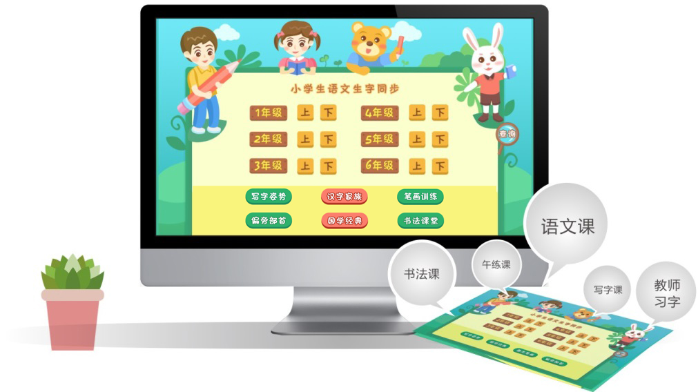 六、書法課程主要是分兩個部分:低年級主要是少兒楷書,通過結合動畫及生活情景的形式進行教學,學習起來更有趣味性。高年級以楷書快寫為主,提升學生書寫速度,作業及考試書寫又快又好。