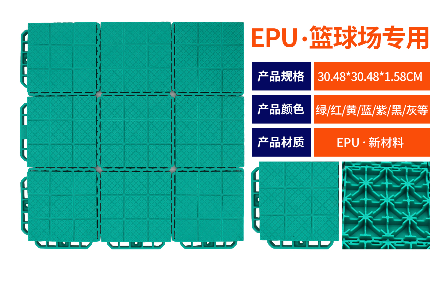 產品詳細介紹EPU 地板,為朵拉咪新型橡膠材料彈性拼裝地板。地板材質為自主研發(fā)的新型硫化橡膠材料,整體結構充分體現(xiàn)了橡膠材料的超級彈性,顛覆傳統(tǒng)硬質 PP 拼裝地板材質硬、腳感差、摔倒硬著地受傷、摔倒擦傷、遇汗水打滑、遇雨水影響打球的所有痛點。通體橡膠材料,超環(huán)保、超舒適、超減震、超防滑、超耐候、超安全,“質造”極致性能,為使用者提供絕佳的運動體驗與安全防護。 EPU 軟膠格子紋 產品規(guī)格:30.48cm*30.48cm*1.58cm 產品顏色:紅色、草綠、綠色、藍色、黃色和天藍色 產品材料:復合高分子熱塑性彈性體材料 產品克重:480 克 適用場地:全民健身及高端中小學運動場地產品分級:專業(yè)比賽級 產品質保:3 年