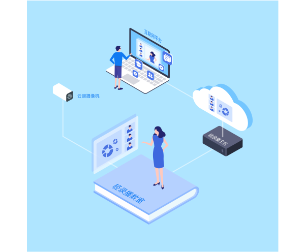 銳取輕錄播·常態化教室采用輕量化設計,部署簡單,應用輕松,建設成本低,能夠滿足大批量建設與應用需求,系統能夠無縫兼容教室原有標考或監控機位接入,并通過USB直接輸出音視頻信號給盯釘、騰訊會議、WeLink等互聯網平臺,為學校打造線上+線下全流程的教學應用。