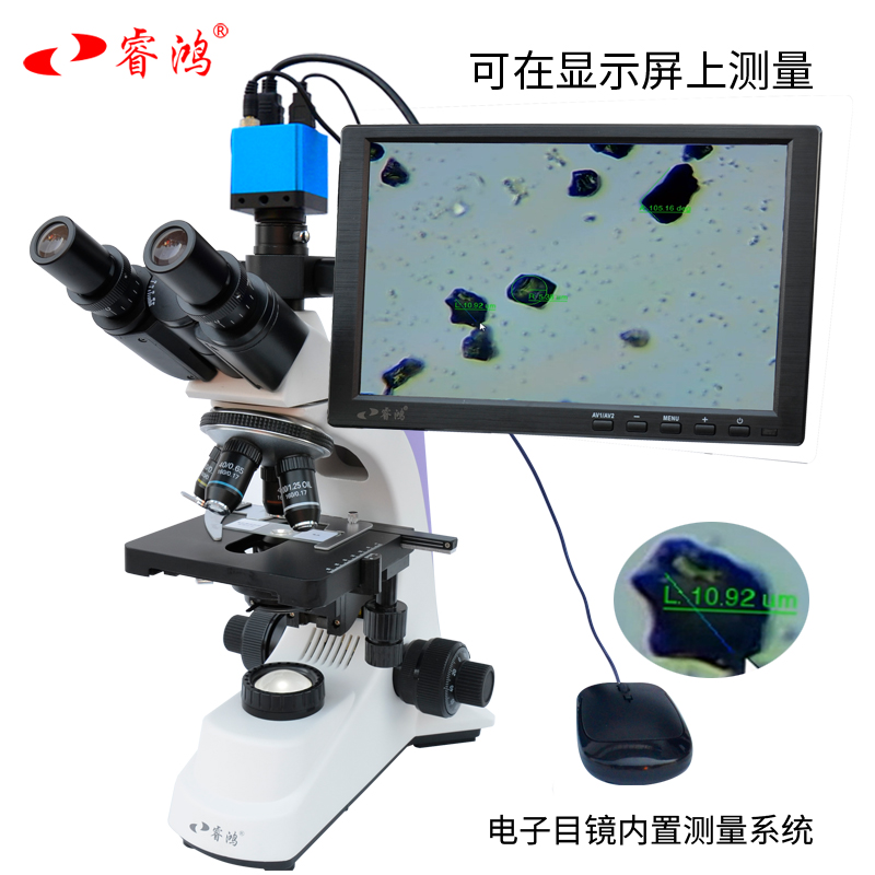 產品詳細介紹品牌:睿鴻 型號:BM-500T 觀察頭:膠鏈式三目(雙目+電子接口),雙目30度傾斜 目鏡:WF10X廣角目鏡、H16X惠根斯目鏡,各一對,電子目鏡、顯示屏(選配) 雙目瞳距:55-75mm 物鏡轉換器:四孔外傾 物鏡:195消色差物鏡:4倍、10倍、40倍、100倍 載物臺:雙層移動平臺130*120mm 調焦機構:粗微調同軸,行程:20mm,微調精度0.002mm 聚光鏡:阿貝聚光鏡,N.A=1.25,帶可變光欄、升降手輪 照明:臨界照明,LED 3W,亮度可調節 電子目鏡:HDMI1600萬像素電子目鏡,帶HDMI、USB二種接口 HDMI接口接帶相應接口的電視機輸出 。 接HDMI線時,可插TF卡,保存看到的圖像或視頻。可以在電子目鏡上操作或在遙控器上進行保存圖像等操作。 USB接口可以接電腦,將看到的圖片進行測量。