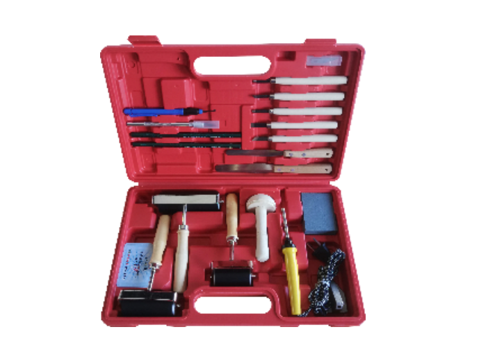 產品詳細介紹木刻刀5把,筆刀1把,筆刀片3件,35W電烙鐵1把,木蘑托1把,膠輥1套≥10cm、7cm、5cm,油石1件,調墨刮刀2把≥17.5cm,去刺刮刀1把≥11cm,6B中華繪圖鉛筆2只,塑料定位包裝箱。<br />