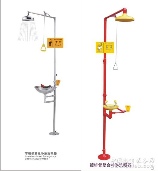 緊急沖淋洗眼器 類型:不銹鋼/不銹鋼烤漆 涂層:高亮度環氧樹脂涂層 沖淋器:SUS304不銹鋼入水管(42mm)、球閥開關、圓條拉桿(直徑6mm)和沖淋頭 洗眼器:SUS304不銹鋼入水管(42mm)、球閥開關和洗眼盆 洗眼噴頭:高密度PP,內置不銹鋼過濾網,可過濾水中雜物。可添加不銹腳踏板控制洗眼開關。
