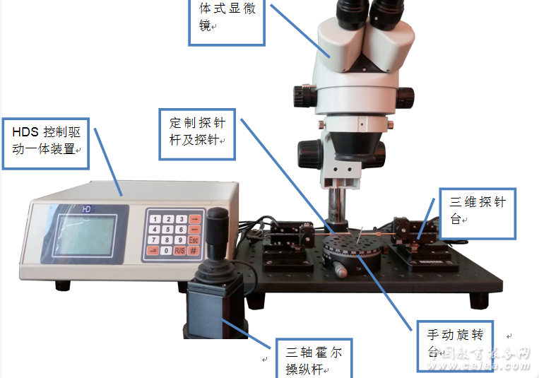 產品詳細介紹 三維探針臺是海格威自動化設備有限公司自主生產的微型壓電線性馬達驅動的三維探針臺,該探針臺具有結構緊湊、高精度、多功能、響應迅速及高性價比的特點,是實驗室及生產檢測設備的最佳選擇。該探針臺采用了模塊化設計的理念,可以十分方便地組合成各種探針檢測設備,旨在滿足各種諸如單切晶片、4’’以下晶圓、LED 芯片、模塊、印刷電路板組件和微流體芯片等多種器件的精密電測量的需要。該三維探針臺配備專門的3 軸霍爾控制元件,可在觀測的時候同時進行靈活和精準的操作。同時具備十分優良的可擴展性,可根據需要選配各種不同部件進行功能上的升級。