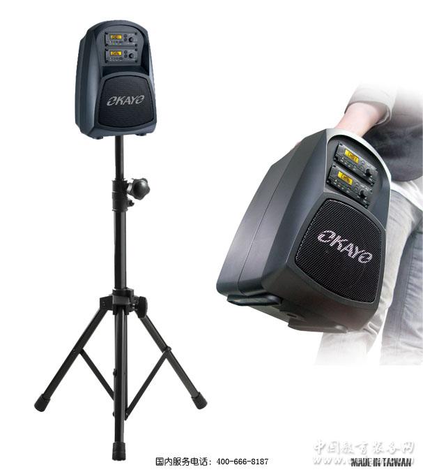 產品詳細介紹OKAY<a href="http://www.wxaudio.cn/audio/product/bxky/2010/1121/80.html"><strong>O奕杰GPA-500D無線會議音響</strong></a>,操作方便,具有輕巧、省電、聲場強勁清晰的最佳效能。可固定架設在室內、或攜帶至室外靈活使用。齊全的功能及貼心的操作設計,可配置專業桌面式無線發射機實現會議室的全無線擴聲,免布線高音效。<br /> 產品特性:<br /> 可以手提、肩掛(選配背袋)、或放置桌上、裝置在三腳架或固定于墻壁上使用。<br /> 可同時使用有線、無線麥克風混合擴音。<br /> 搭配兩組最先進的UHF-LCD顯示自動選訊無線接收模塊,使用距離遠,可避免接收斷音或受到干擾。<br /> 可配置數字MP3音樂播放機,讀取播放SD/USB MP3音樂文件<br /> 隱藏式天線設計,避免天線折斷故障及使用上的困擾。<br /> 內建12 V/ 2.9AH充電電池、搭配其智能型充電電路可以同時充電與使用,充電4小時連續使用達六小時。<br /> 輸出功率50W-Max.@ 4Ω <br /> 喇叭5", 全音域<br /> 頻率范圍640 - 865 MHz.<br /> 音源輸入6.3ψ-Mic in, 3.5ψ-Aux in (立體混音)<br /> 音源輸出3.5ψ-Aux out (立體混音) <br /> 音量控制旋鈕接收模塊, Master Tone, Mic, Aux <br /> 電源供應100 ~ 240 VAC / 18 V DC, 2.7A switching power adaptor <br /> 電池12 V, 2.9 Ah (鉛酸) 充電式電池<br /> 尺寸D 260 x W 210 x H 290 mm <br /> 重量4.4 kg |