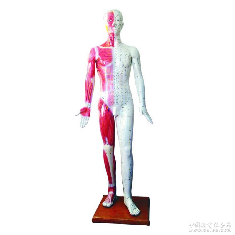 這款170cm標準針灸穴位模型(自然大)非常詳細地標明了14條主要經(jīng)絡(luò)線,身體右側(cè)是361個經(jīng)穴和48個經(jīng)外穴以及骨度線,即用“寸”來方便地測量針灸點之間的距離。身體左側(cè)是皮下組織,顯示神經(jīng)系統(tǒng)分布、動靜脈、血管和肌肉構(gòu)造,還標明了在主要經(jīng)絡(luò)線上沒有標明的手足部的經(jīng)外穴。適用于中醫(yī)教學、針灸和推拿等。