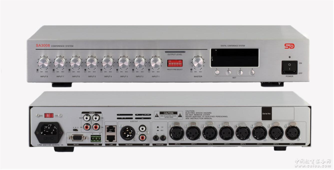 產品特點: 》1.5U全鋁外殼結構,高檔而且穩固。可裝配固定支架,安裝標準19“機柜 》獨創的差分聲音對比檢測系統,使系統保持高的切換靈敏度,最短開啟時間為50豪秒,最大程度的避免語音掉字,并且大大提高了檢測的精準度,最小的對比檢測幅度達到1毫伏。 》內置數字DSP嘯叫抑制器,讓系統音頻表現出色, 》配有12232液晶顯示屏,讓操作和系統狀態可視,讓系統操作更清晰,更簡單 》系統可最多連接8個攝像球,典型連接值為3,并配有3進1出的視頻矩陣,全自動的完成視頻跟蹤。并可通過電腦完成系統設定。系統可支持SONY,派爾高P/D協議。可輕松應用于各種視頻會議工程 ·RS-232外部控制端口,用于擴展混音器的應用能力,可接中控系統控制每通道的聲門開啟與關閉 ·每路配備幻象電源,可選取1-4或5-8,方便連接各種話筒使用 ·快速自動開啟只有信號輸入的通道聲門,動作電平能自動調整 ·無需外加解碼器支持,語言觸發,完成視像自動跟蹤功能。 》率先在系統內部加入1:1實時錄播功能,讓系統實時錄播功能。滿足用戶的高端需求, 》系統最大支持16臺機級聯, 》系統符合國際CE標準,品質卓越。