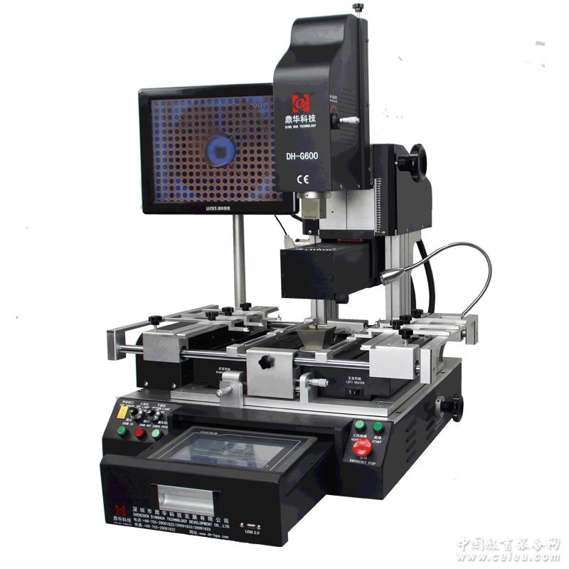 產品詳細介紹 DH-G600主要參數: 高清觸摸屏人機界面,PLC控制,并具有瞬間曲線分析功能.實時顯示設定和實測溫度曲線,并可對曲線進行分析糾正。 高精度K型熱電偶閉環控制和溫度自動補償系統,并結合PLC和溫度模塊實現對溫度的精準控制,保持溫度偏差在±2度.同時外置測溫接口實現對溫度的精密檢測,并實現對實測溫度曲線的精確分析和校對. 采用高精度數字視像對位系統,PCB板定位采用V字型槽,采用線性滑座,使X、Y、Z三軸皆可作精細微調或快速定位、方便、準確,滿足不同PCB板排版方式及不同大小PCB板的定位. 靈活方便的可移動式萬能夾具對PCB板起到保護作用,防止PCB邊緣器件損傷及PCB變形,并能適應各種BGA封裝尺寸的返修.; 配備多種規格合金風嘴,該風嘴可360度任意旋轉定位,易于安裝和更換; 上下共三個溫區獨立加熱,三個溫區可同時進行多組多段溫度控制,保證不同溫區同步達到最佳焊接效果。加熱溫度、時間、斜率、冷卻、真空均可在人機界面上完成設置。 上下溫區均可設置8段溫度控制,可海量存儲溫度曲線,隨時可根據不同BGA進行調用,在觸摸屏上也可進行曲線分析、設定和修正; 三個加熱區采用獨立的PID算法控制加熱過程, 升溫更均勻,溫度更準確; 采用大功率橫流風機迅速對PCB板進行冷卻,以防PCB板的變形,貼裝、焊接、拆卸過程實現智能自動化控制; 具有USB接口,可方便下載當前曲線圖到U盤中存起,以及可以插上鼠標使用加長觸控屏使用時間 配置聲控“提前報警”功能.在拆卸、焊接完成前5-10秒以聲控方式警示作業人員作相關準備。上下熱風停止加熱后,冷卻系統啟動,待溫度降至常溫后自動停止冷卻。保證機器不會在熱升溫后老化!12經過CE認證,設有急停開關突發事故自動斷電保護設置