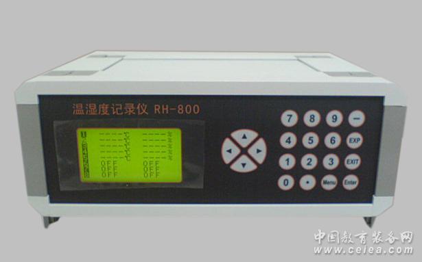 二、商品介紹: 1.技術特點 RH-800型溫濕度記錄儀具有以下特點: ☆測量準確度高,抗干擾能力強 ☆采用瑞士羅卓尼克標準溫濕度傳感器測量,測溫、測濕準確可靠 ☆開機無須預熱,系統開機自動校準,使用方便且長期穩定性好 ☆儀表內設有多項校正功能,可以輸入并保存8組傳感器修正參數,對傳感器進行多點修正,保證數值準確 ☆帶128×64點陣液晶顯示屏,最多可同時顯示8通道溫度及濕度數據 ☆帶RS232接口,配專用的智能溫濕度采集圖形軟件