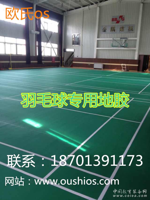 OS(歐氏)羽毛球館用地板牢固性 羽毛球場地膠發泡層底面用紋路,合理的重量能在場地鋪開后結合人工用滾地筒將地板與地面接觸間的空氣排出,形成相對真空狀態,更加具有附著力,在運動時更具有穩定性。 OS(歐氏)羽毛球館用地板舒適性 羽毛球場地膠表面經特殊處理,與燈光亮度吻合,不會吸光和反光刺眼,能更好的保護運動員的眼睛,不易產生疲勞,總厚度達4.5mm,配以適當發泡底層為緩沖層,使其更具有減震性和反彈。有效地減輕了運動員的腿部沖擊力,腳感舒適,更好的避免了運動損傷,提高運動員水平的發揮。 OS(歐氏)羽毛球館用地板耐久性和耐磨性 羽毛球場地膠采用100%純PVC優質材料,面層經特殊高環保高科技材料TPU技術處理,及具最佳耐久性和耐磨性,從而增加了地板的使用壽命。