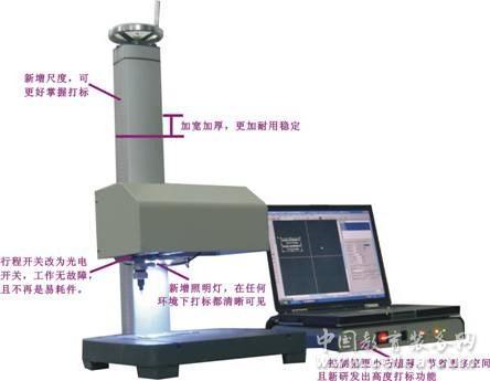 產品詳細介紹基本原理: 通過計算機控制打標針按照電腦編輯好的字符圖形軌跡運動,同時打標針在壓縮空氣的作用下對工件作高頻沖擊,從而在工件上形成字符和圖形。 主要性能: 基于Windows 98 / 2000 / XP / NT 平臺的操作軟件,編輯功能強大,使用更方便?纱蛴≈形摹⒂⑽淖址⒗當底、任意圖形、可自動進行流水號打印、國際標準VIN碼打印、刻度打印。 主要特長: 與國內外氣動打標機比較,本廠的主要獨特之處是: 1、采用升降式雙立柱結構,適應性更廣,定位更精準。(一般打標機為單立柱) 2、采用四根進口方型直線導軌,打印精美度大大提高,從而實現了高速打印。(同類氣動機二根導軌) 3、打標頭(針套)采用特殊的耐磨材料經特殊工藝制作而成,耐磨性大大提高,使用壽命提高了幾十倍。(普通打標頭針套均采用銅材制作,耐磨性差,磨損后影響打標精美度) 4、平面標牌夾具設計緊湊且與電腦連接,實現智能化半自動打印,符合人機工程學原理,使用特別方便。(同類打標機即使有夾具也沒有同電腦連接,不能實現半自動打印) 5、打標頭的排氣裝置是我廠的創意設計,既降低了噪音又極大地提高了操作人員的舒適性。 6、一機多用,同一臺高度尺寸有限的臺式打標機,還可在任意大小或任意高度的物體表面的任意位置上打印。這是我廠的最新創意設計。 7、同一臺打標機同一個打標頭,既能在鋼鐵上打標又能在不干膠紙上打標(一般氣動打標機能在鋼鐵上打標,但很在難紙上打標)。 應用范圍: 1、汽摩行業:對車身、車架、底盤、大梁、發動機、連桿、汽缸、活塞、缸套、齒輪、水泵、彈簧鋼板等打印出廠編號、生產編號、生產日期、名稱、商標等內容; 2、機械行業:對各種機械零部件、機床工具、五金制品、鋼管、套管、接箍、牙輪、泵體閥門、法蘭盤、緊固件打標; 3、儀表、機電設備的打標; 4、塑料制品、皮革制品打標; 5、在鋁、銅、不銹鋼、PVC等材質的標牌(銘牌)上打印數據、出廠編號、生產日期等; 6、刻印刻度盤。
