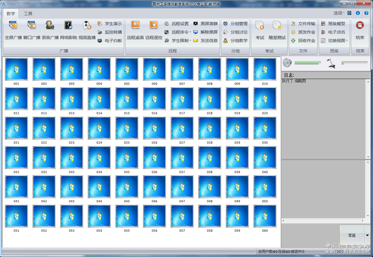 產(chǎn)品詳細介紹「育林衛(wèi)多媒體教學系統(tǒng)V7.0」即是針對電腦教學的需求,基于網(wǎng)絡環(huán)境所設計開發(fā)的交互式教學系統(tǒng),讓老師可輕松地將各種影像(images)、聲音(audio)、圖形(graphics)、文字(text)、視訊(video)、動畫(animation)…等多媒體教學素材,在教學過程中實時引用,并有遠程監(jiān)看、遠程遙控、文件傳輸、上網(wǎng)控制、資產(chǎn)管理…等多項功能可供教學與管理應用,是老師從事電腦教學的最佳輔助工具。
