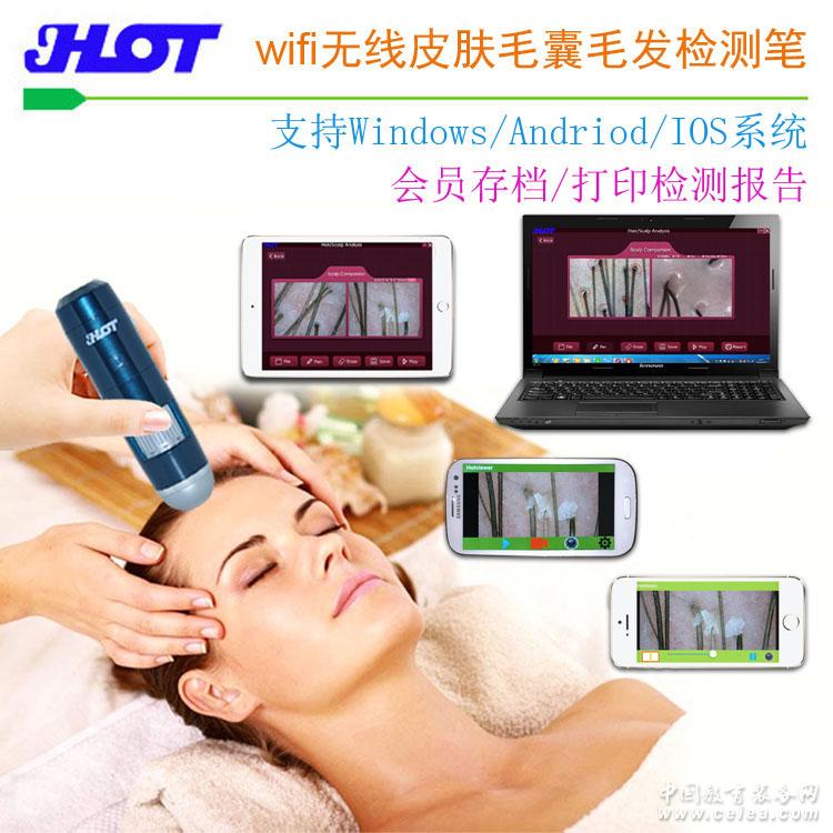 1.介紹 WIFI無線頭皮毛發檢測儀 它由光學部件組成鏡頭,由電子元件完成信號采集/轉換,然后通過顯示儀器(電腦、手機或平板)顯示出來,并可以拍照、存儲在顯示儀器設備上。 2.特點 相比于有線頭皮毛發檢測儀,移動范圍受線長的約束和只能在電腦或電視上查看圖像。WIFI無線頭皮毛發檢測儀在有線頭皮毛發檢測儀的基礎上加入了WIFI無線傳輸技術,使其接入USB時不但可以在電腦上運用,而且當其切換成WIFI連接之后,還可以在Andriod、Ios系統上的手機和平板上使用,在10米以內可以自由移動,實現了跨系統、跨空間的操作。